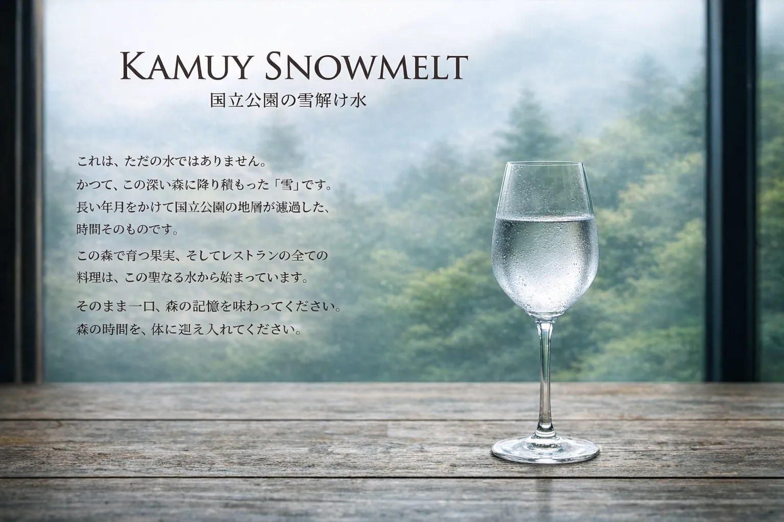 森の湧き水「スノーメルト」からはじまる食卓。